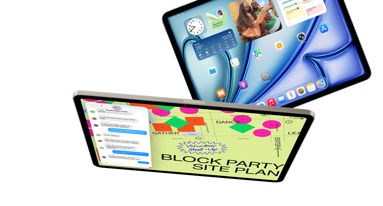 iPadOS 26 introduces Liquid Glass, a stunning new design with a vibrant look and game-changing enhancements that put iPad Air productivity on a new level. A reimagined, intuitive windowing system gives you greater power and flexibility than ever before. Run pro apps, play high-performance games, and take on creative projects of any size with a natural, touch-first experience.