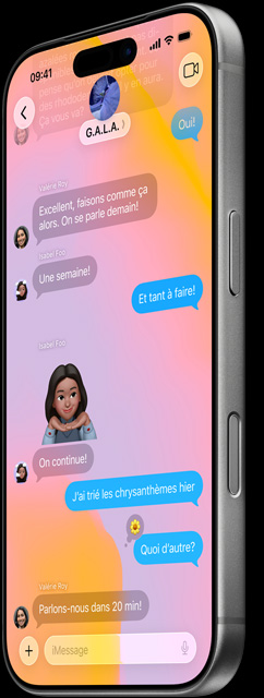 Les plus récents modèles d’iPhone mettent une foule de capacités avancées à votre portée. Comme l’intelligence visuelle12 et les outils d’écriture d’Apple Intelligence, conçus pour vous aider au quotidien. Les connectivités Wi‑Fi 713, Bluetooth 6, 5G14 et eSIM15, aussi rapides que sûres. Et des fonctionnalités de sécurité telles que Messages par satellite16 pour contribuer à votre tranquillité d’esprit.
