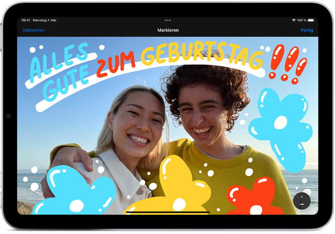 Der Apple Pencil Pro liefert noch mehr magische Möglichkeiten fürs Umsetzen deiner Ideen. Mit fortschrittlichen Features wie Druck, Rotation und dem haptischen Feedback kannst du intuitiver als je zuvor kommentieren, dir Notizen machen und ein Meisterwerk erstellen. Die Apple Pencil Schwebefunktion zeigt dir eine Vorschau davon, wo genau der Apple Pencil Pro das Display berühren wird.1 Du kannst zweimal tippen, um schnell zwischen Tools zu wechseln. Wenn du ihn zuhause oder unterwegs mal verlegt hast, findest du ihn ganz einfach in der „Wo ist?“ App. Und der Apple Pencil Pro koppelt, lädt und haftet magnetisch an der Seite deines iPad.