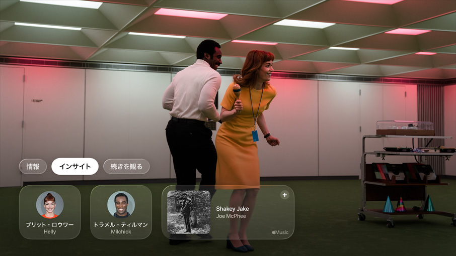 「対話を強調」機能。テレビの内蔵スピーカー、HomePod、レシーバーなどで再生するコンテンツ内の話し声を聞き取りやすくします13。お気に入りの映画や番組の音楽やバックグラウンドサウンドにまぎれていた小さな声も、もう聞き逃しません。臨場感あふれる体験をこれまで以上に楽しめます。必要な時には字幕が自動で表示され、ます14