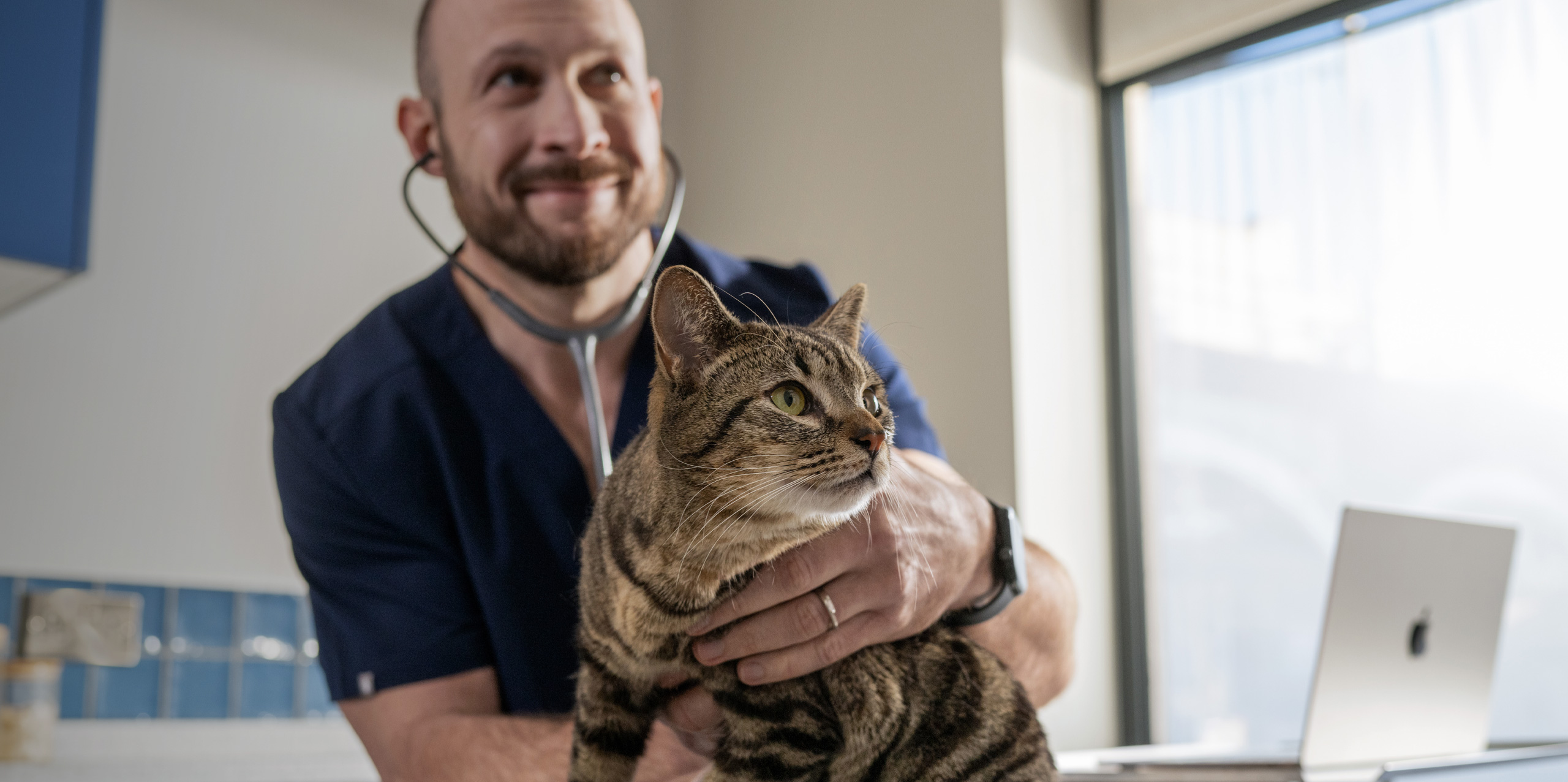 Hello Vet 之所以選擇 Apple 產品,因為它們易於使用又可資信賴,讓團隊支援一眾客户,暢順無阻。在接待處,員工會使用 iMac 並透過雲端病患管理系統為應診的寵物登記。每間診療室均配備一部 Mac mini,手術室則設置多個備有 iMac 的工作站,方便團隊分工使用。此外,每位獸醫和護士均獲發一部 MacBook Air,其輕巧設計加上持久的電池使用時間,方便他們在診所周圍隨身攜帶。