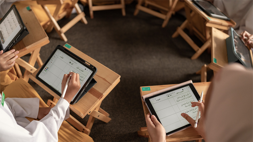 Las estudiantes usan el iPad y el Apple Pencil para escribir en árabe sobre el estilo de vida, la cultura y los valores islámicos, y comparten sus reflexiones en libros digitales. También aprenden y practican el arte de hablar en público, porque se les anima a plasmar sus historias personales en Keynote y compartirlas con el resto de la clase a través del Apple TV. De hecho, usan con bastante frecuencia el iPad para todas las actividades de diseño, como un concurso que tuvo lugar hace poco para crear el nuevo uniforme escolar.