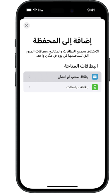 • في المملكة العربية السعودية، يمكنك استخدام "النمط السريع" حالياً للتنقل بواسطة الحافلات أو المترو في الرياض. اطّلع على القائمة الكاملة بالمدن التي يتوفر فيها تطبيق المحفظة من Apple للمواصلات العامة هنا.