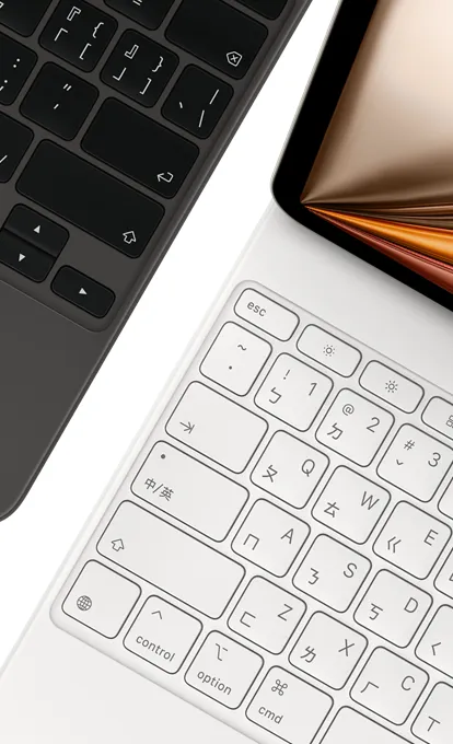 巧控鍵盤是 iPad Air 的最佳搭檔,備有黑色與白色可供選擇。流暢纖薄的設計,方便攜帶。打起字來手感絕妙,配合觸控式軌跡板,助你輕鬆駕馭需要精準度的工作。配備 14 鍵的功能鍵列,有 USB-C 連接器用來直通充電,還能為 iPad Air 提供機身正面與背面的保護。它的懸臂設計可順暢調整多種觀看角度,寬大的玻璃觸控式軌跡板,則讓你以更多方式使用 iPadOS2
