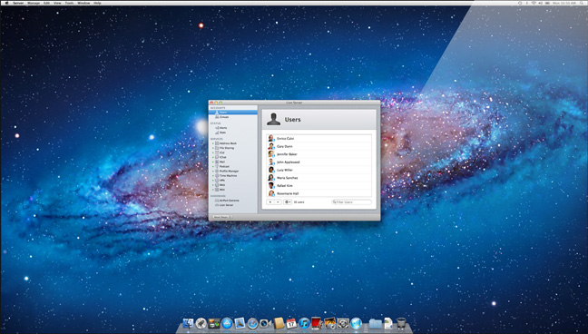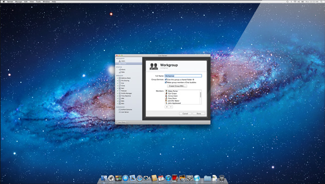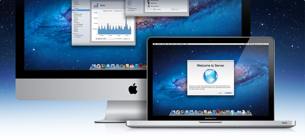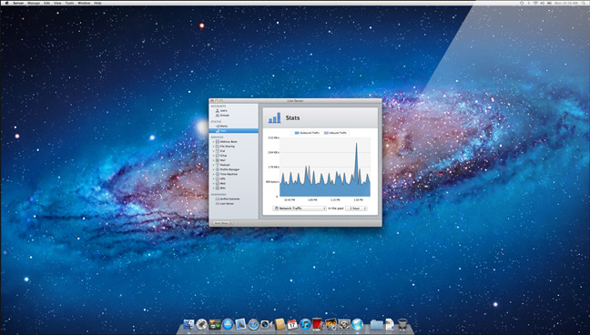 全新的伺服器應用程式能讓你處理一切與伺服器有關的項目,設定起來無比容易,它的設定輔助程式,透過程序一步步引導你,只要點按幾下,你就能輕鬆上路。 你可在本機及遠端管理各種功能及服務,如使用者與群組、檔案共享、行事曆、電子郵件、聯絡人、聊天、Time Machine、VPN、網頁及 wiki 服務。想知道你的伺服器效能嗎?伺服器應用程式可以告訴你。它會以圖形顯示監視存取及伺服器效能,提供你硬體設定及儲存空間使用概覽。當伺服器出現問題或有新的軟體更新時,可在伺服器應用程式設定以電子郵件通知你。